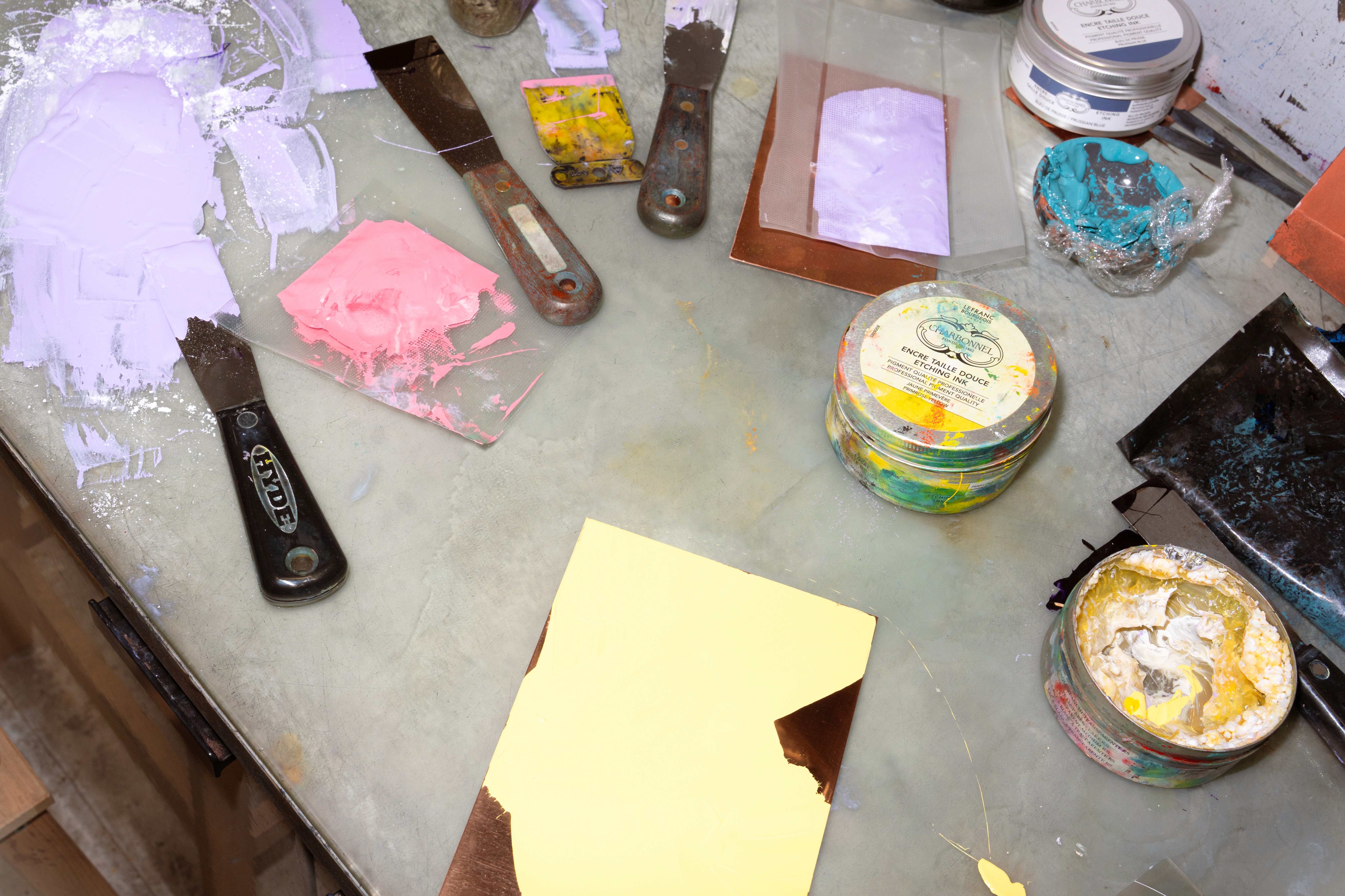 Founded in 2021, Derin Print Shop has been home to Derin’s own work as well as ongoing artist collaborations for the past five years. Almost every month, the studio hosts a new artist, each producing their work alongside Derin in her role as master printer. Among the artists the studio has welcomed so far are Güneş Terkol, Larissa Araz, Toygun Özdemir, and Meena Hasan.